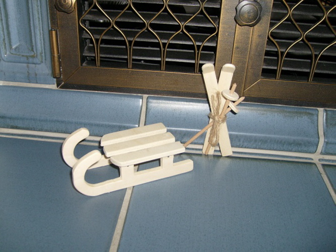 Schlitten 13 cm Lang Nr.62 Ski mit Stöcke 12 cm lang Nr.64
