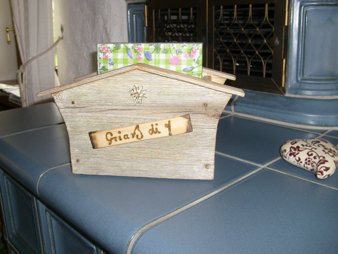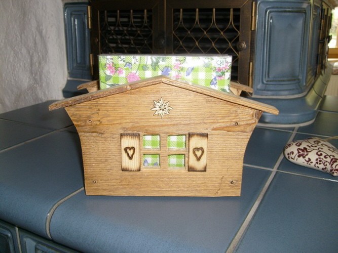 Holzhaus aus Altholz für Servietten 17/17 cm
