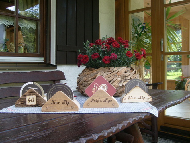 Bierdeckelhalter Altholz mit Tischnummer (auf Anfrage)