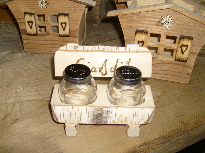 Bank mit Pfeffer und Salz aus Birkenholz Nr.93 L15cm H10cm B7cm