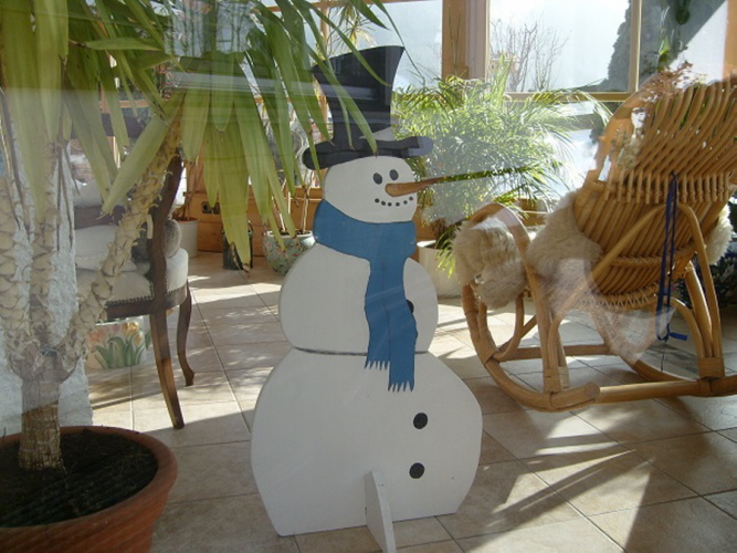 Schneemann im Wintergarten