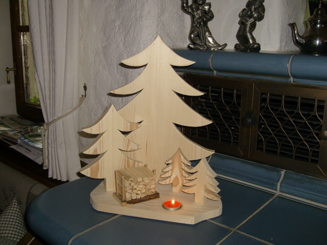 Tannenbaum 3er Set mit Reh 40 cm hoch 35 cm breit
